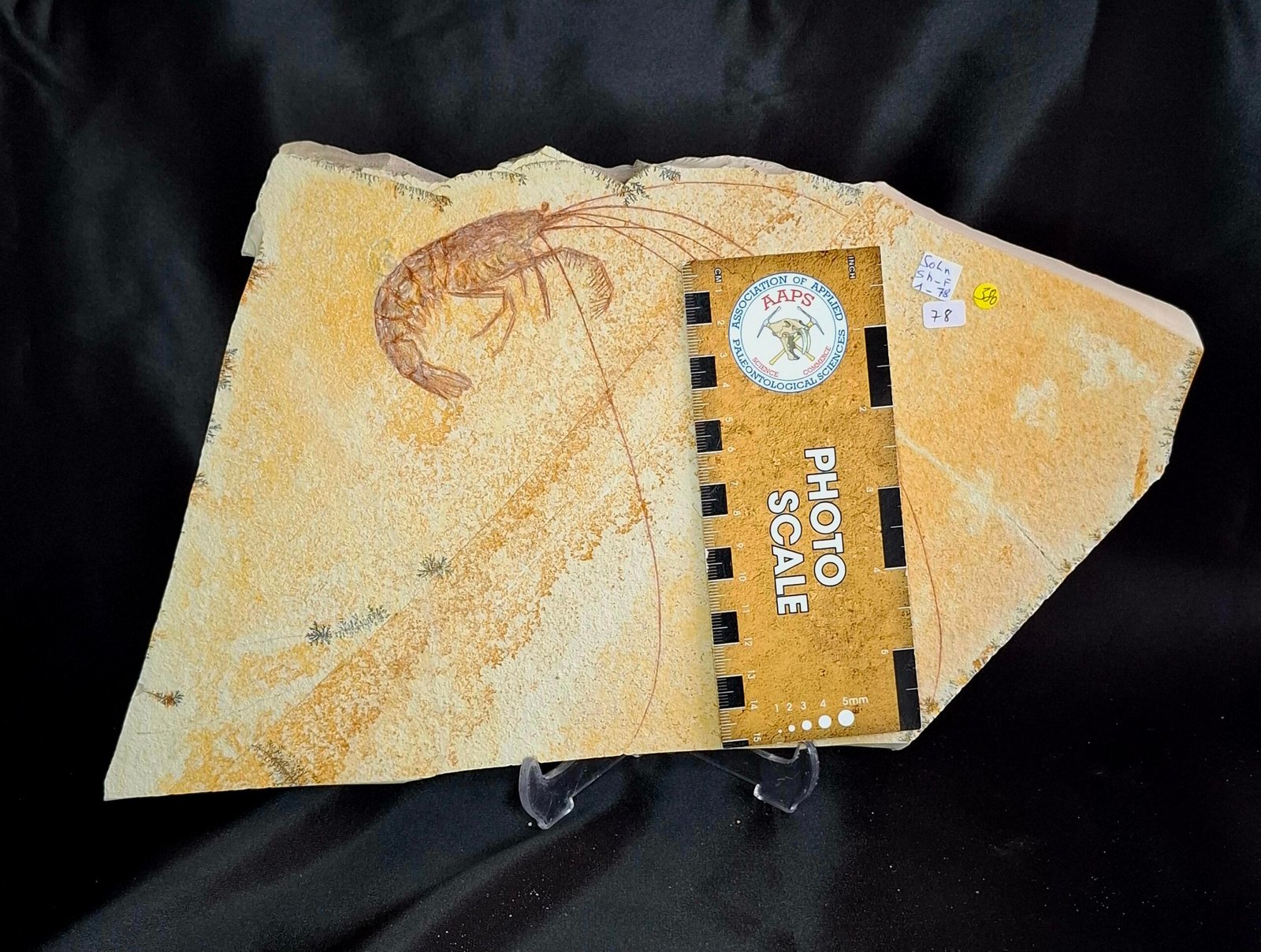 These crustaceans thrived in the calm, hypersaline lagoons of the Solnhofen archipelago, where periodic anoxic events inhibited scavengers and decomposition, allowing for remarkable soft-tissue preservation, including fine antennal structures visible in several of the specimens here. The fine lamination of the lithographic limestone has captured minute morphological features in exquisite detail, including articulated appendages and segmented abdomens. In several specimens, restoration has been applied selectively to the antennae, a common and accepted practice in fossil preparation, especially when working with fragile or incomplete extremities. These restorations are minimal and professionally executed, preserving the scientific integrity and visual impact of the specimens.