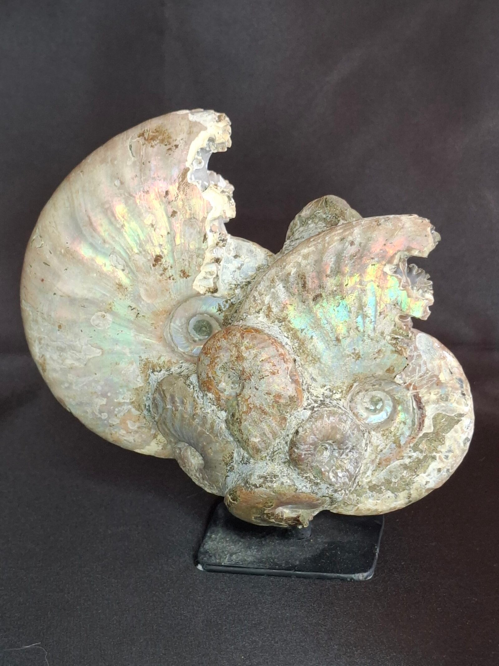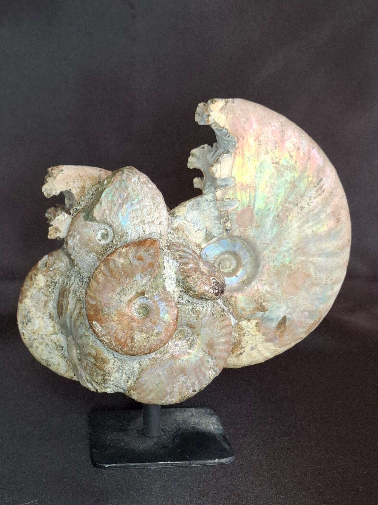 Sourced from the rich fossil beds of Madagascar, this piece showcases the extraordinary preservation and vibrant beauty unique to ammonites from this region.