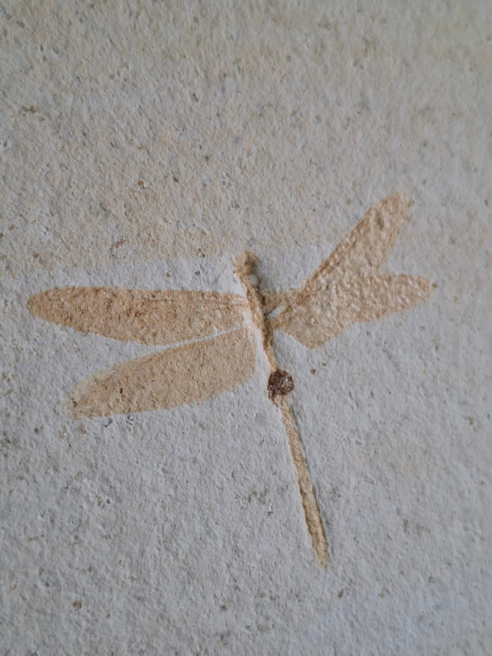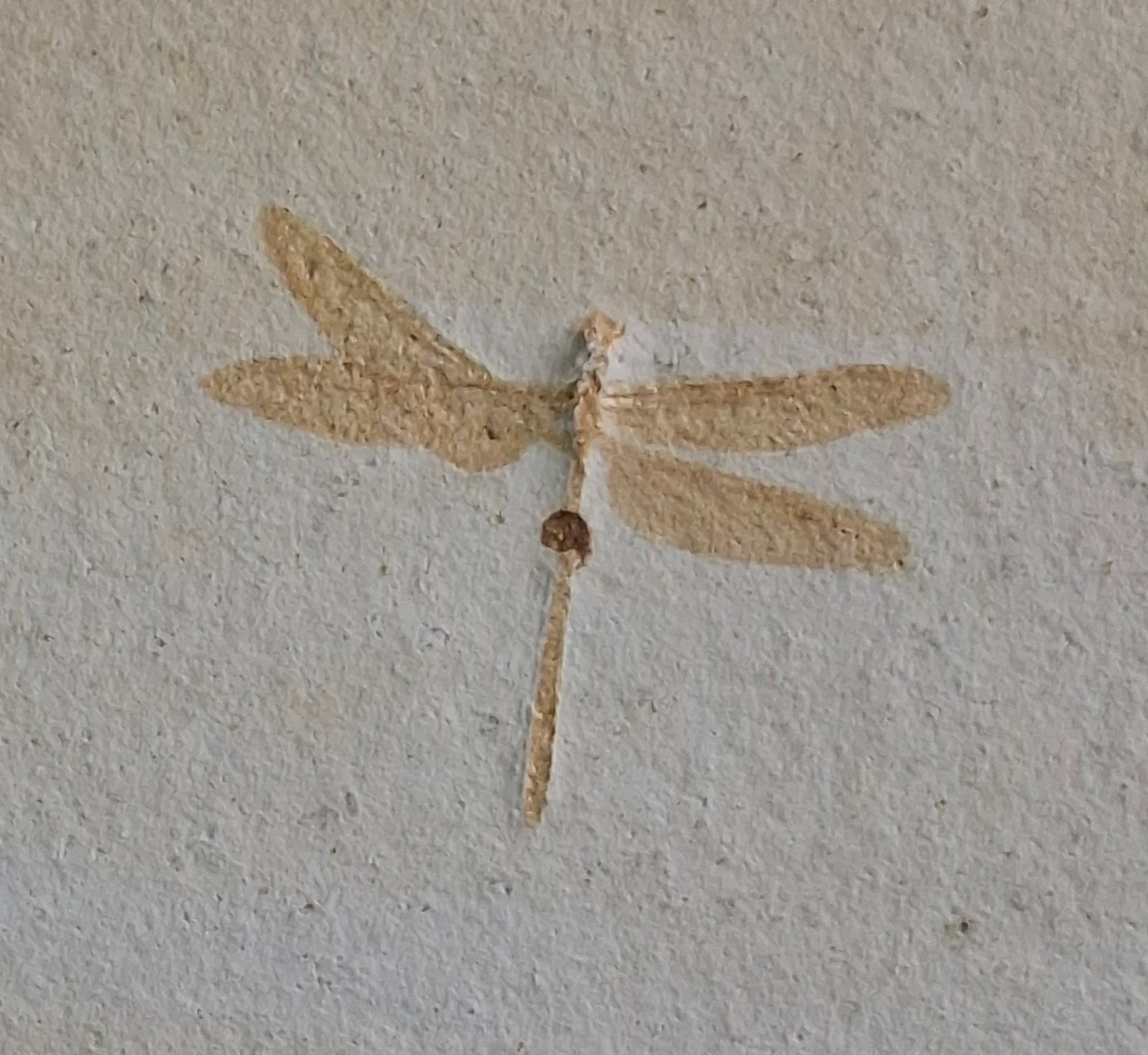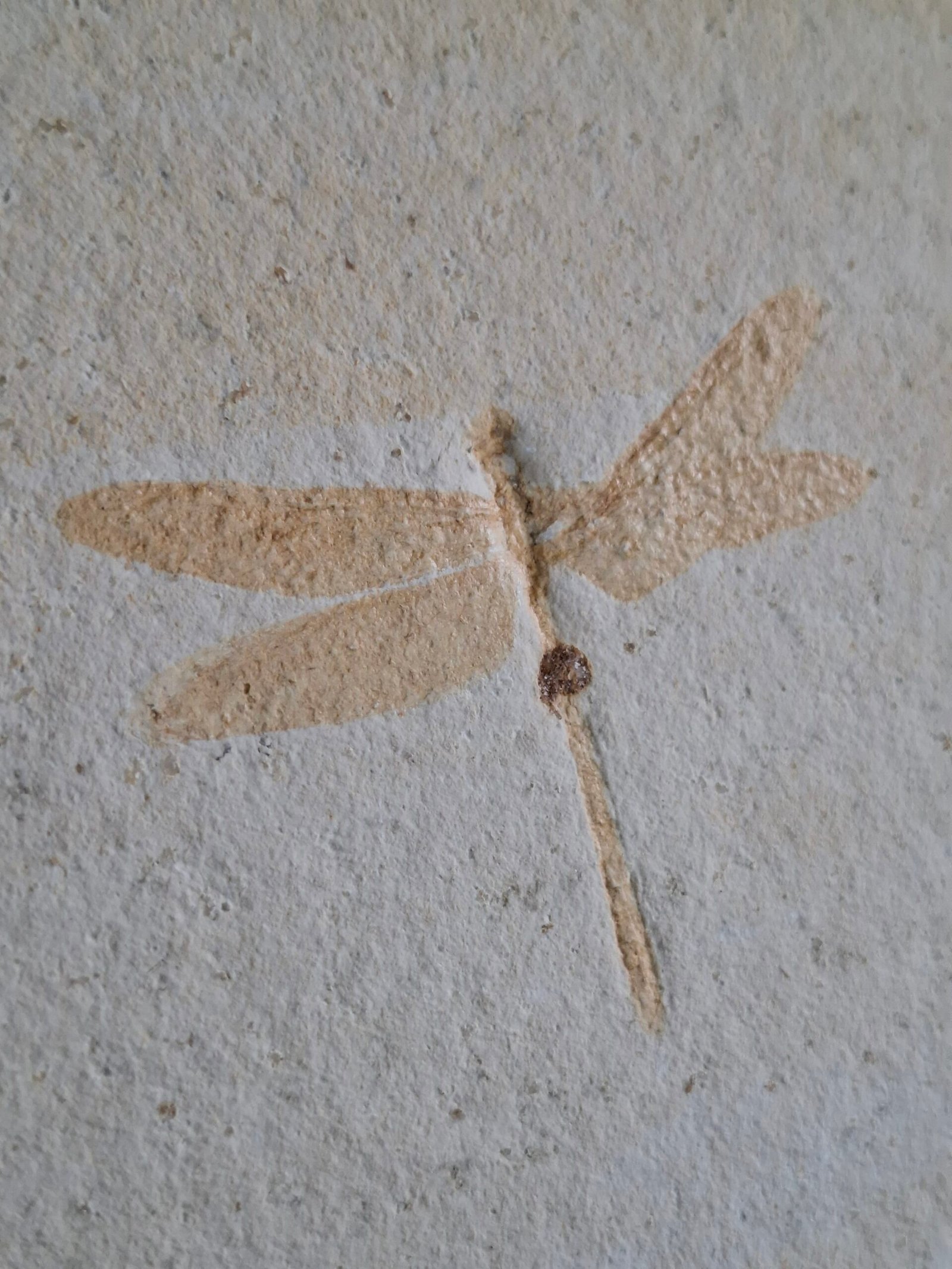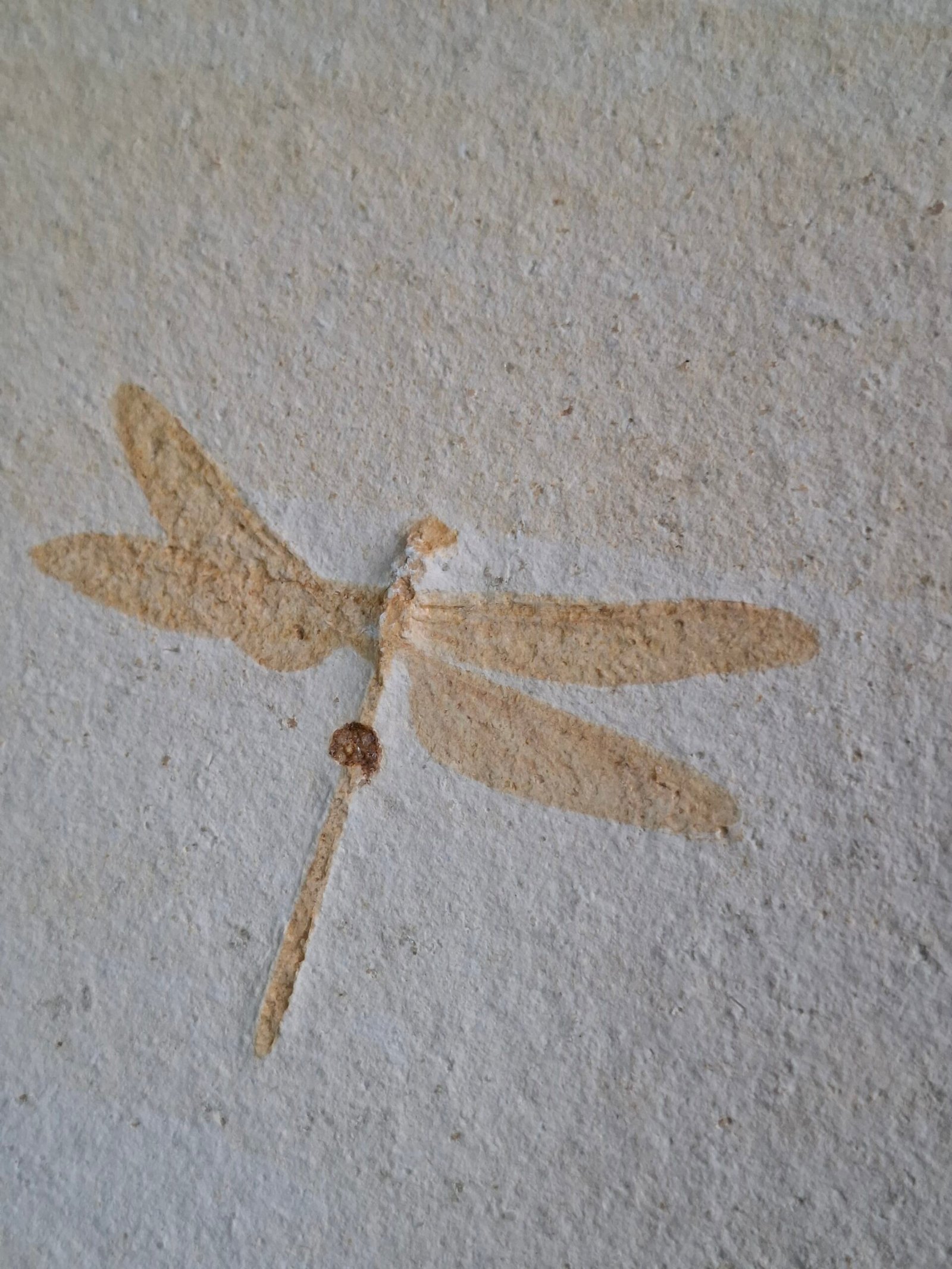 A beautifully preserved dragonfly fossil from the Jurassic-period limestone of Solnhofen, Germany. This rare specimen is presented as a complete pair (positive and negative imprint), showcasing delicate wing venation and body structure. A true collector’s piece from a world-famous fossil site.