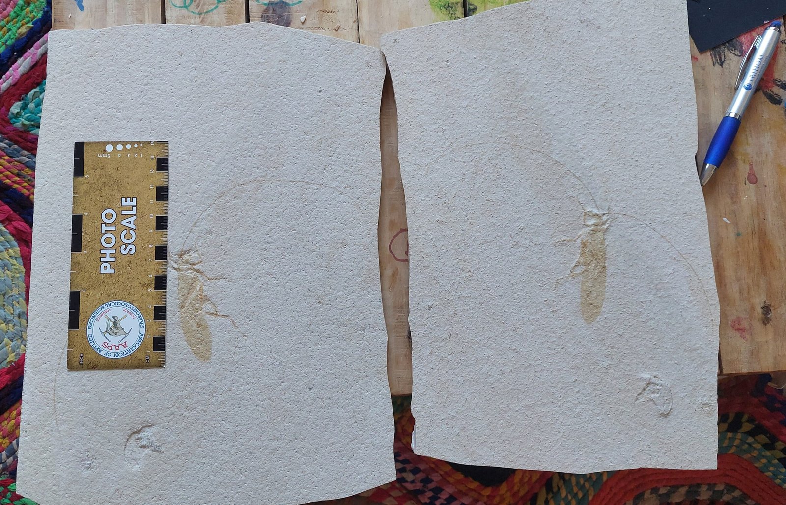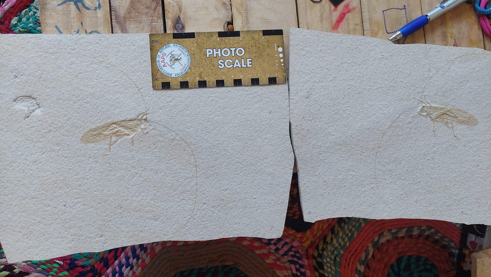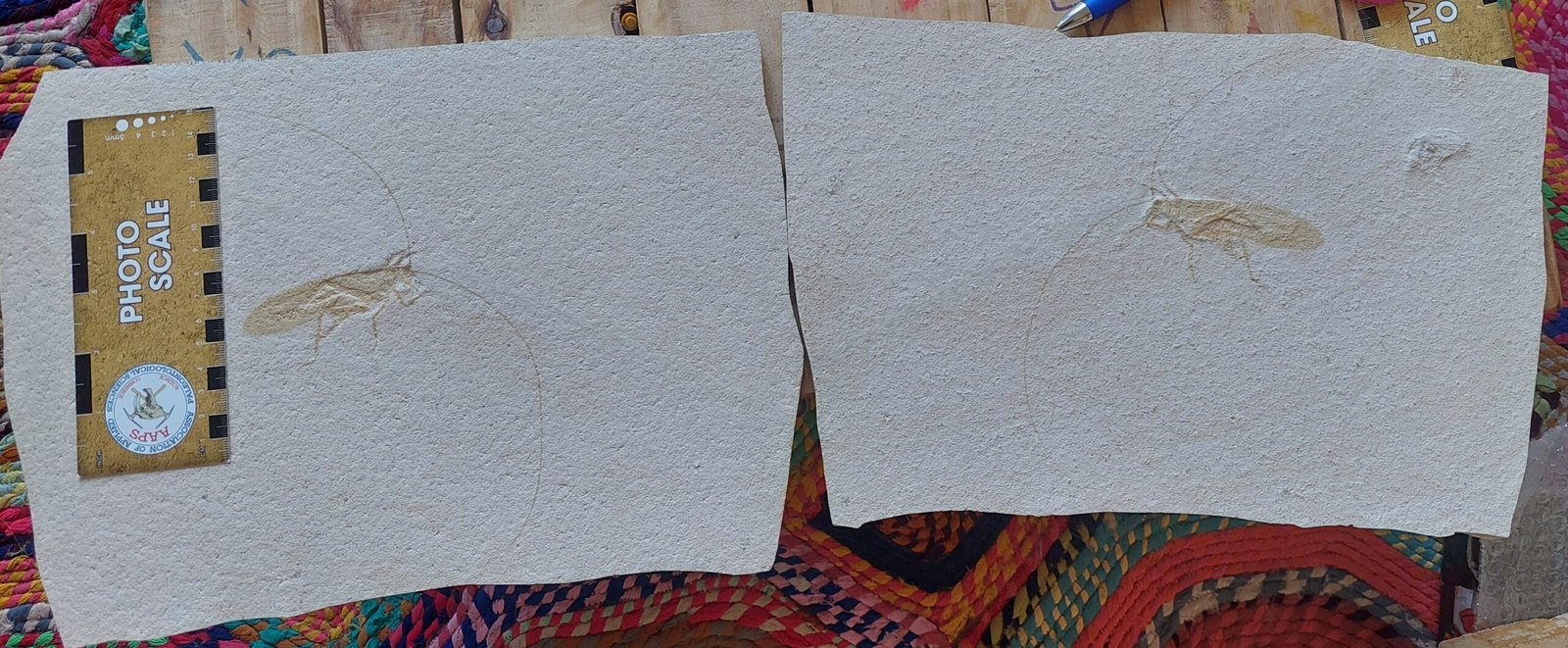 Positive and Negative Giant Pycnophlebia Solnhofen Grasshopper fossil / Solnhofen Age (150 Million years)